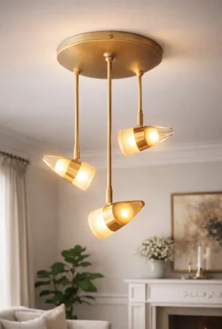 Lámpara de techo dorada con tulipas blancas