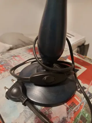 Lámpara de escritorio con diseño moderno y flexible. - Cabezal rectangular con múltiples LEDs. - Brazo ajustable para dirigir la luz. - Base estable y cable de alimentación incluido. La única pega es que el botón está un poco duro pero funciona perfectamente, no es duro de fallo si no que nunca se uso . Precio negociable