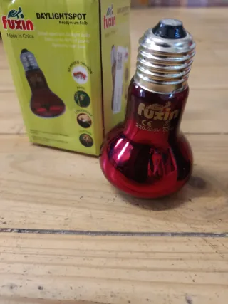 Conjunto de cinco lámparas de calor cerámicas para terrarios de reptiles. Incluye una lámpara roja y cuatro negras. - Lámpara roja Fuxin Daylightspot. - Cuatro lámparas negras Rep-Shot de 100W y 75W. - Voltaje: 220-240V. 4 euros unidad Solo venta en persona