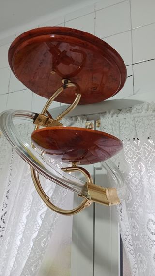 Lámpara Vintage Vidrio Metal Dorado Rojo