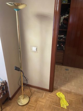 Conjunto de dos lámparas con un diseño elegante y moderno. Las dos por 26,90€ las barras son de cristal están muy muy bien conservadas el dorado como se ve en las fotos tiene todos los cristales que son 46 pero al sacarlos para hacer la foto se me rompieron unos cuantos de ahí el precio los que están a la derecha donde el tubo negro son los que están rotos son facilísimos de conseguir se pueden poner todos en el círculo pequeño y en el grande se pueden poner salteados son super bonitas son súper bonitas unas más alta que la otra y están muy bien conservadas - Estructura con detalles dorados. - Cilindros de cristal facetado. - Colga