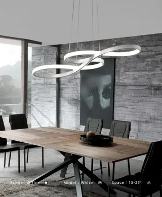 Elegante lámpara colgante con un diseño moderno y fluido, con mando a distancia. Diferentes tonos de luz. - Acabado en color blanco. - Fabricada en metal y plástico. - Altura regulable