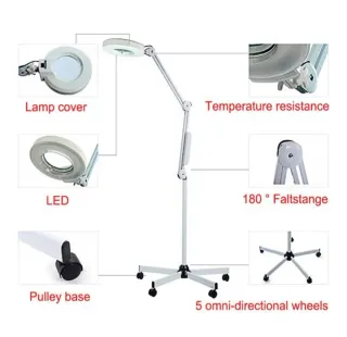 Lámpara de pie con brazo articulado y lupa integrada - Diseño moderno y funcional. Descripción Lámpara Lupa Led 5 Aumentos: Brazo articulado y base de ruedas (Ref. 1005) Moderna lámpara de LEDs de luz fría con lupa de 5 aumentos. Su brazo articulado facilita el movimiento y la fijación de la lámpara con total comodidad. Características Técnicas: - Tiene 70 leds, pie y mordaza - Dispone de embellezador de plástico para la protección del cristal. - Brazo articulado que facilita el movimiento y la fijación de la lámpara con total comodidad. - Base con 5 ruedas Especial tatuajes Tattoo tattoos estética cara cejas ojos tatuador