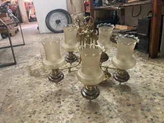 Bonita lampara de bronce para salon o dormitorio con 5 brazos pueden contactar por whatsapp al 665657953