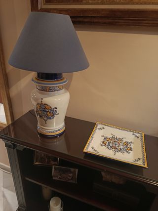 Lámpara cerámica y bandeja a juego