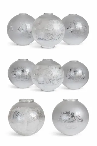Tulipa de vidrio con diseño serigrafiado al ácido. El acabado esmerilado le da un toque elegante. 3 unidades (2 iguales y 1 diferente) Precio por unidad - Diseño floral serigrafiado. - Acabado esmerilado.