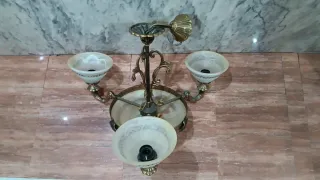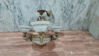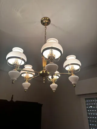 Elegante lámpara de techo con un diseño clásico. - Estructura principal en metal con acabado en tonos marrones. - Tulipas de cristal blanco. - Ideal para dar un toque acogedor a cualquier estancia. Preguntar sin compromiso. Una vale 39 y la otra 29