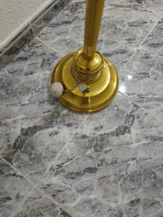 Elegante lámpara de pie con acabado dorado. Su diseño es moderno y funcional. - Altura regulable. - Bombilla incluida.