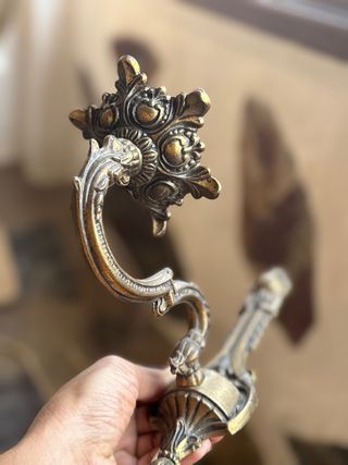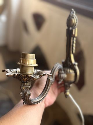 Elegante aplique de pared con diseño clásico y un acabado dorado que aporta un toque de distinción y carácter a cualquier espacio. - Fabricado en metal resistente. - Estilo vintage. - Ideal para añadir un punto de luz decorativo. Tengo más cosas en mi perfil, todo negociable.