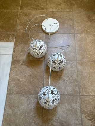 Lámpara ornamental con un diseño intrincado y elegante. - Estructura de metal con acabado plateado. - Patrón calado detallado. - Ideal para decoración. precio negociable