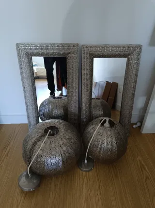 2 Espejos y 2 Lámparas Decorativas