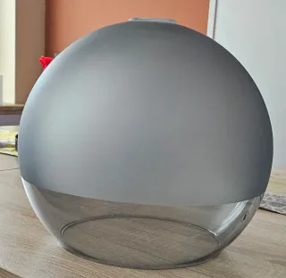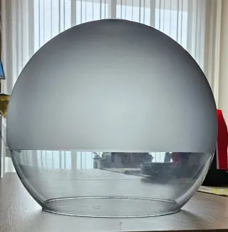 Pantalla para lámpara con un diseño moderno y elegante. Combina materiales de calidad para un acabado sofisticado. - Parte superior gris opaco. - Base inferior transparente. Esmerilado/gris. Altura: 25 cm Diámetro: 30 cm