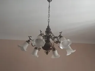 Se vende lámpara de techo con 8 brazos de alabastro y latón envejecido. Dimensiones: 1m de diámetro Proporciona una luz muy agradable por el color del alabastro. Está en perfecto estado, la quiero vender por cambio de residencia . Por peso y fragilidad de la lámpara, no se realizan envíos. Recogida en mano