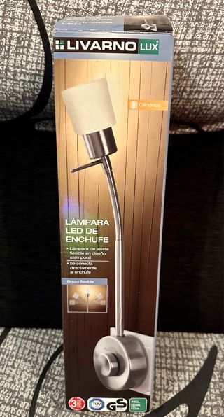 Lámpara LED de enchufe con brazo flexible. - Se conecta directamente al enchufe. - Brazo flexible para ajuste de posición. Se puede orientar en la dirección deseada. - interruptor de encendido y apagado con atenuador de luz giratorio de regulación continua. - incluye bombilla LED