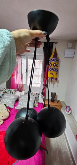 Lámpara colgante 3 esferas negras