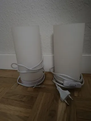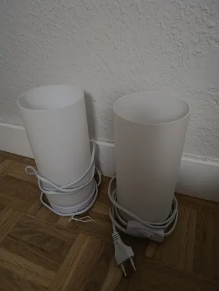 Par de lámparas de mesa con un diseño cilíndrico moderno. Son ideales para añadir un toque de luz ambiental a cualquier habitación. - Set de dos lámparas. - Forma cilíndrica. - Acabado translúcido.