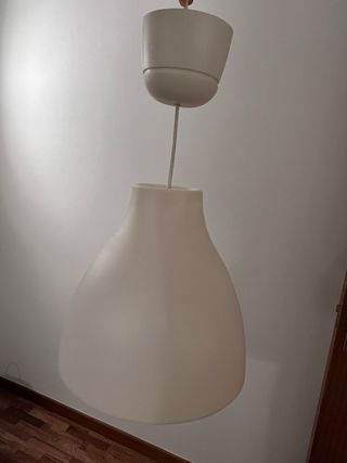 Lámpara moderna de Ikea, modelo grande. Su diseño permite que se abra. - Materiales: cristal y plástico. - Colores: blanco y negro.