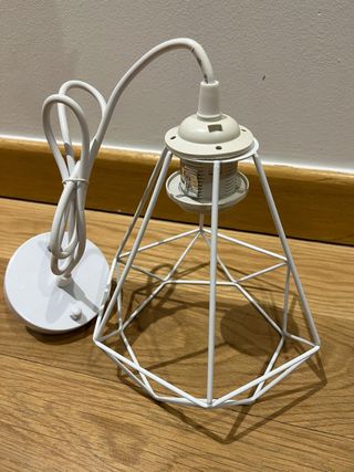 Lámpara colgante con un diseño geométrico moderno. Su estructura abierta crea un juego de luces interesante. - Estructura de metal con acabado blanco. - Portalámparas de plástico.