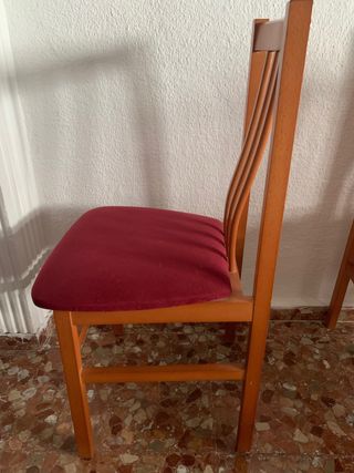 Conjunto de sillas de madera con un diseño clásico y asiento tapizado en tela. - Estructura de madera resistente. - Asiento cómodo y acolchado.
