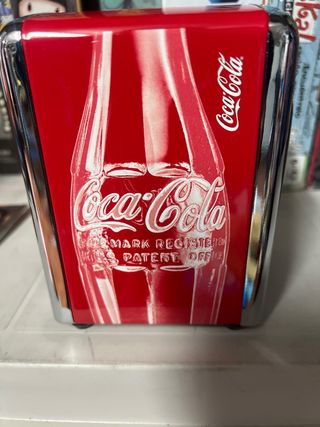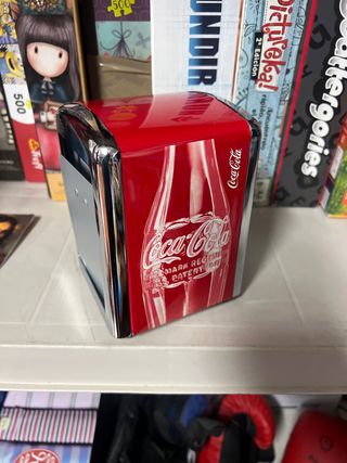 Servilletero con el icónico diseño de Coca-Cola. Un accesorio llamativo para cualquier espacio. - Diseño clásico de la botella de Coca-Cola. - Acabado brillante. Vendo sueltos a 5€
