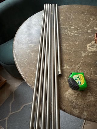 Conjunto de barras de cortina de aluminio. - Material: Metal - Color: Plateado Las podemos llevar a Madrid. Solo las barra. Sin embellecedores, topes ni agarres