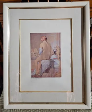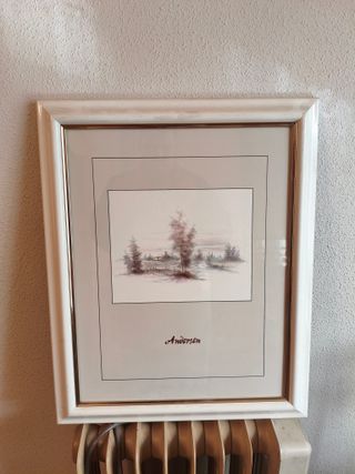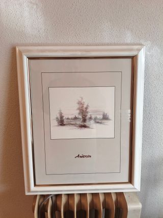 Precioso cuadro decorativo con la firma Andersen. Medidas 47.5x58.5 - Marco de madera con detalles dorados y blancos. - Cristal protector.