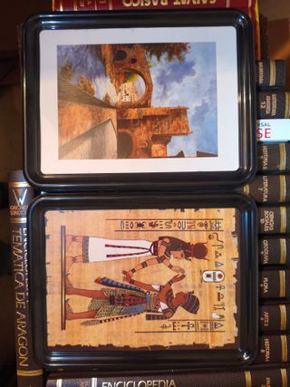 Varios cuadros decorativos con motivos antiguos. -15€ cada uno, comprando varios negociable -Medidas 20.5x26 - Dos representan una escena del antiguo Egipto. - Otros muestran una calle con arquitectura tradicional y un puente con un rio.