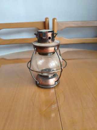 Farol decorativo con un diseño clásico. - Medidas 15.5 alto 10 diámetro - Fabricado en metal y vidrio. - Acabado en tonos marrones y plateados.
