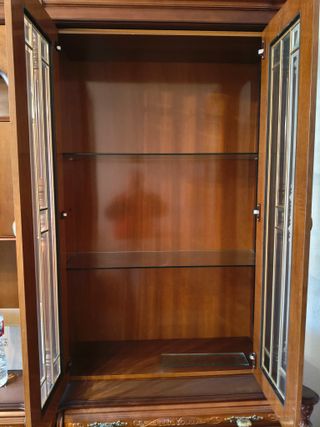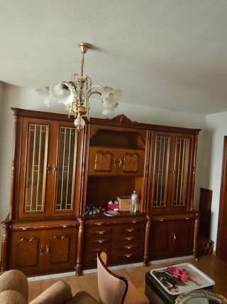 Vendo espectacular mueble de salón de estilo clásico en color madera y de gran calidad. Es un mueble robusto, elegante y con una capacidad de almacenaje increíble. Se encuentra en perfecto estado de conservación, muy bien cuidado. Medidas 3m ancho x 217m alto