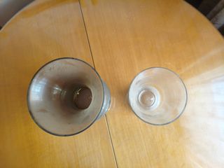 Dos jarrones de cristal transparentes, perfectos para decorar cualquier espacio. - Se venden por serparado a 15€ cada uno - Jarrón marrón 15.5 diamegro x 21.5 alto - Jarrón transparente 12 diametro x 19.5 alto - Diseño elegante y moderno. - Material: Cristal.