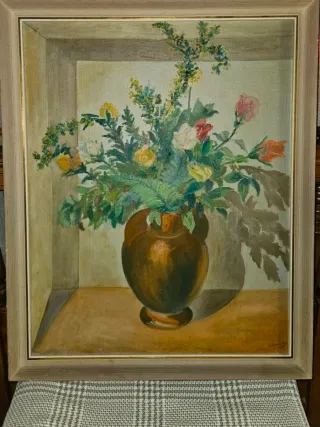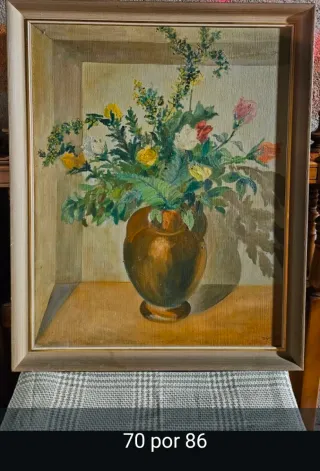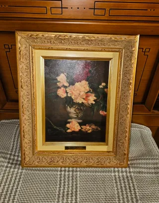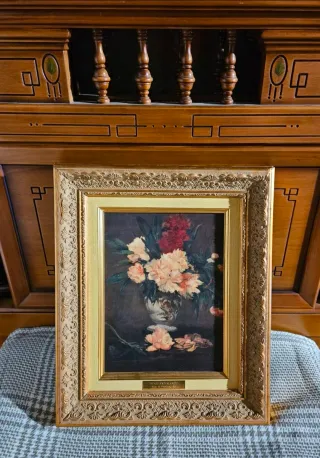 Precioso cuadro de flores pintado al óleo. Antiguo - Marco de madera. - Tonos marrones y verdes predominantes. Lo puedo acercar a Ávila, Escorial, Villalba o Madrid o zonas cercanas. Preguntar