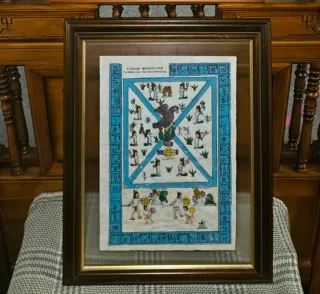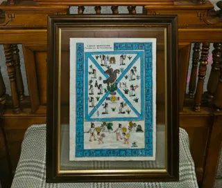 Pieza de arte latinoamericano enmarcada. Medidas 60 por 46 - Representación de Códice Mendocino. - Marco de madera. - Papel con diseño de códice. Lo puedo acercar a Ávila, Escorial, Villalba o Madrid o zonas cercanas. Preguntar