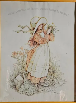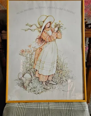 Precioso cuadro de Holly Hobbie con una niña recogiendo flores. - Ilustración con un estilo delicado y romántico. - Marco de madera incluido. Lo puedo acercar a Ávila, Escorial, Villalba o Madrid o zonas cercanas. Preguntar