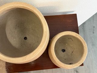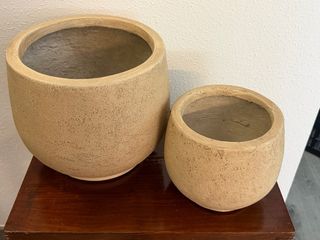 Conjunto de dos maceteros con un acabado rústico y texturizado. - Diseño redondeado y orgánico. - Tonos tierra que combinan fácilmente. - Ideales para dar un toque natural a tu hogar.
