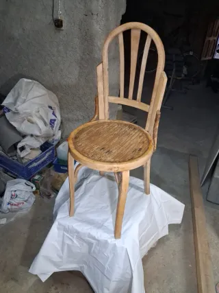 Silla Mocholi de madera, restaurada en un 90%. Lista para darle un nuevo uso. - Estructura de madera. - Diseño clásico. - Color natural de la madera.