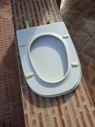 Tapadera de váter de la marca Roca. Es de color blanco y está fabricada en caucho sintético,duro y resistente - Bisagras incluidas. - Topes de goma para mayor estabilidad.