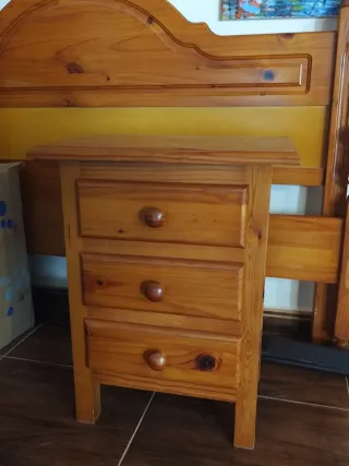 Cama matrimonio pino 135cm, somier y mesilla