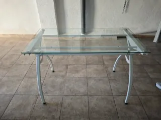 Mesa de cristal con estructura metálica blanca