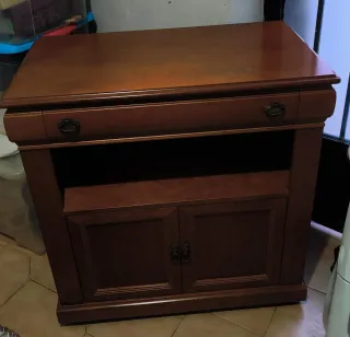 Mueble de madera con un acabado en tono marrón, ideal para tu salón. - Diseño con un cajón superior. - Compartimento abierto. - Puertas inferiores con tiradores.