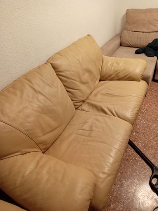 2Sofás de piel beige 3+2 plazas