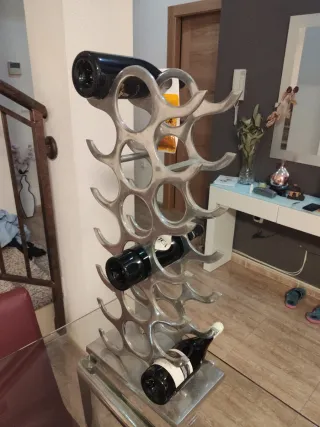 Elegante botellero con capacidad para 20 botellas. - Diseño moderno y funcional. - Acabado plateado. - Fabricado en metal resistente.
