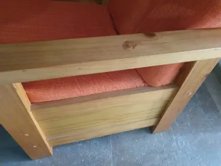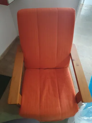 Cómodos sillones con estructura de madera y tapicería de tela. - Diseño moderno y confortable. - Tonos naranjas y marrones que combinan fácilmente. - Ideales para cualquier estancia del hogar.