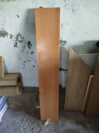 Estante de madera con un acabado natural y liso. - Material: Madera - Color: Beige y marrón