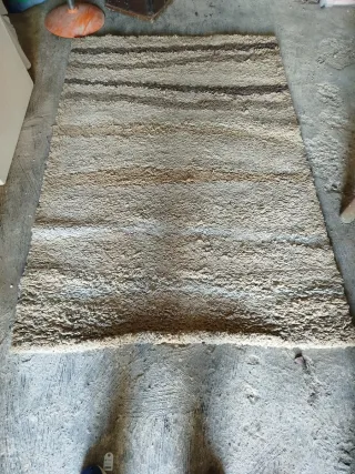 Alfombra de salón con un diseño de rayas en tonos beige y marrón. Su textura suave la hace muy agradable al tacto. - Diseño a rayas. - Tonos tierra.