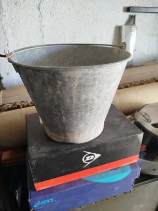 Cubo de metal con asa. - Diseño cónico. - Acabado plateado.