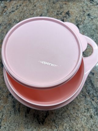 Este es un recipiente Tupperware de color rosa. - Fabricado en plástico resistente. - Diseño práctico y funcional.
