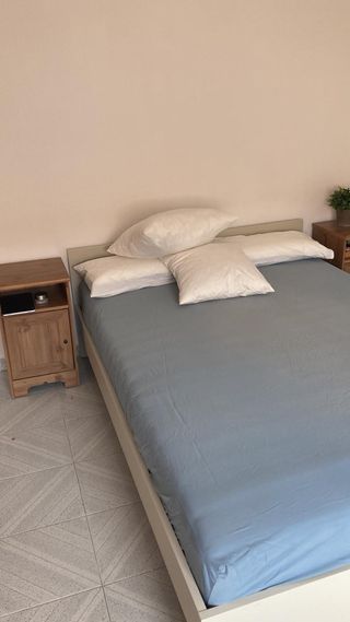 Estructura de cama MALM en color gris perla. Es un modelo antiguo de la MALM y tiene el reposa cabezas más bajito que el modelo actual. Se puede apreciar en la foto inicial. Tiene un arañazo en una de las maderas. Por lo demás está perfecta, apenas se usó. - Tamaño: Longitud: 209 cm Ancho: 156 cm Altura piecero: 38 cm Altura cabecero: 75/78 cm Largo del colchón: 200 cm Ancho del colchón: 140 cm Altura: 100 cm Altura: espacio bajo el mueble: 20 cm. - Material: Madera.