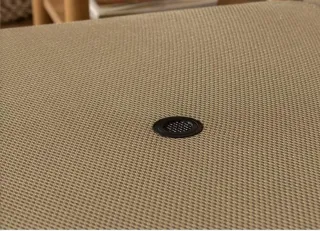 Accesorio para camping. - Diseño en forma de parrilla. - Superficie con líneas. - Base circular central.