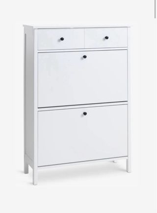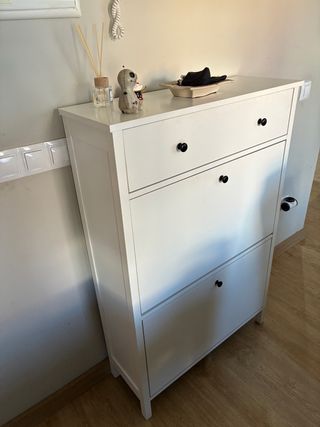 Mueble zapatero de la marca TERPET con dos compartimentos y cajonera superior - Diseño moderno y funcional. - Acabado en color blanco. No tiene ni un año. Costó 120 euros, precio actual en la web. Es para recoger en domicilio y desmontar si preciso