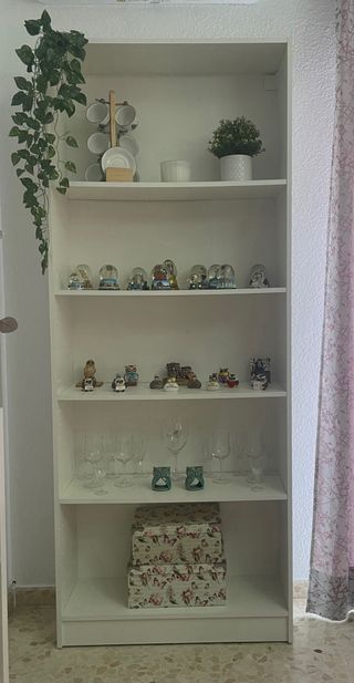 Estantería blanca de Leroy Merlin, ideal para organizar tus objetos. - Estructura robusta. - Diseño moderno y funcional.